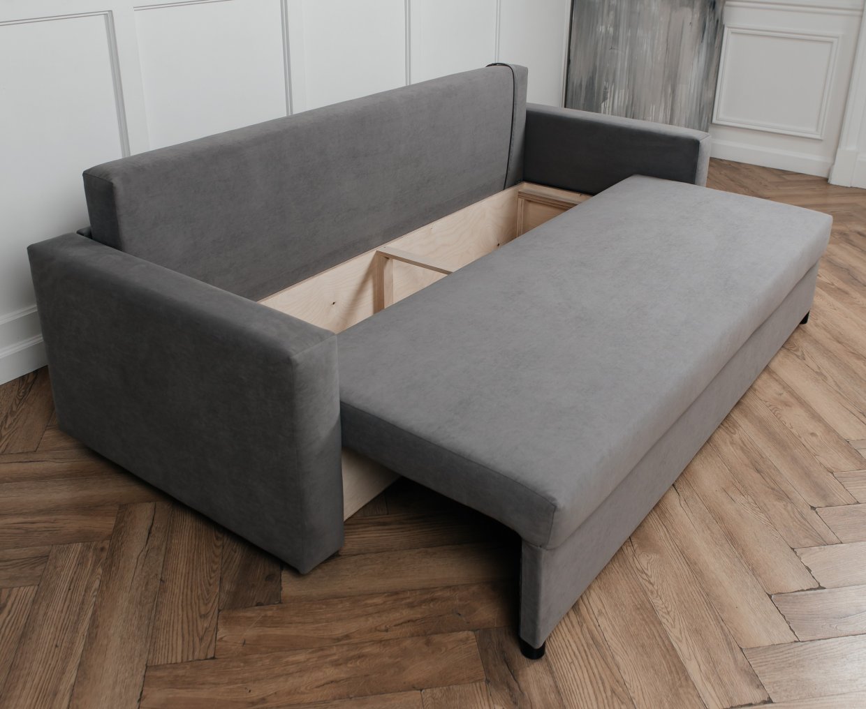 • еврокнижка: диван с таким механизмом занимает совсем мало пространства, может быть размещён как у стены, так и в центре помещения;