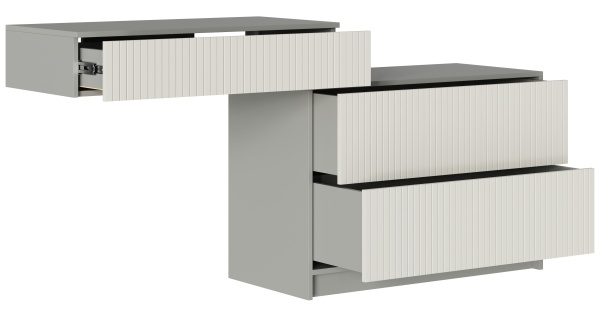 Корпус изделия состоит из двух независимых блоков, в  соединяемых между собой при помощи межсекционных стяжек: Комод и Консоль.