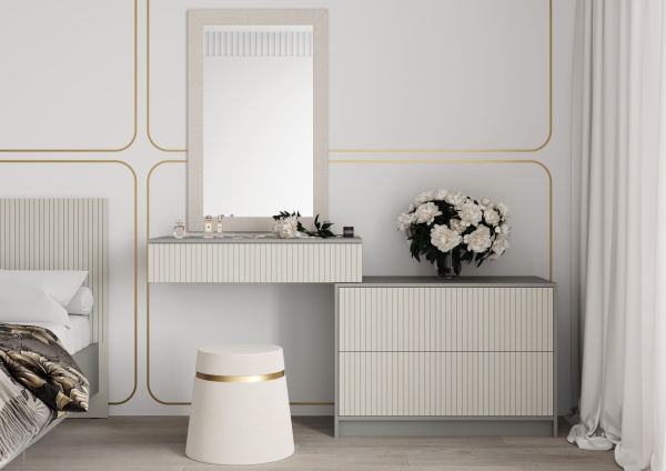 Стильный комод-консоль, который, благодаря своей конструкции может выполнять функцию туалетного столика для ежедневного ухода.