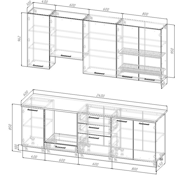 Артикул: A61690Кухонный гарнитур Дели 2400 мм Sanvut