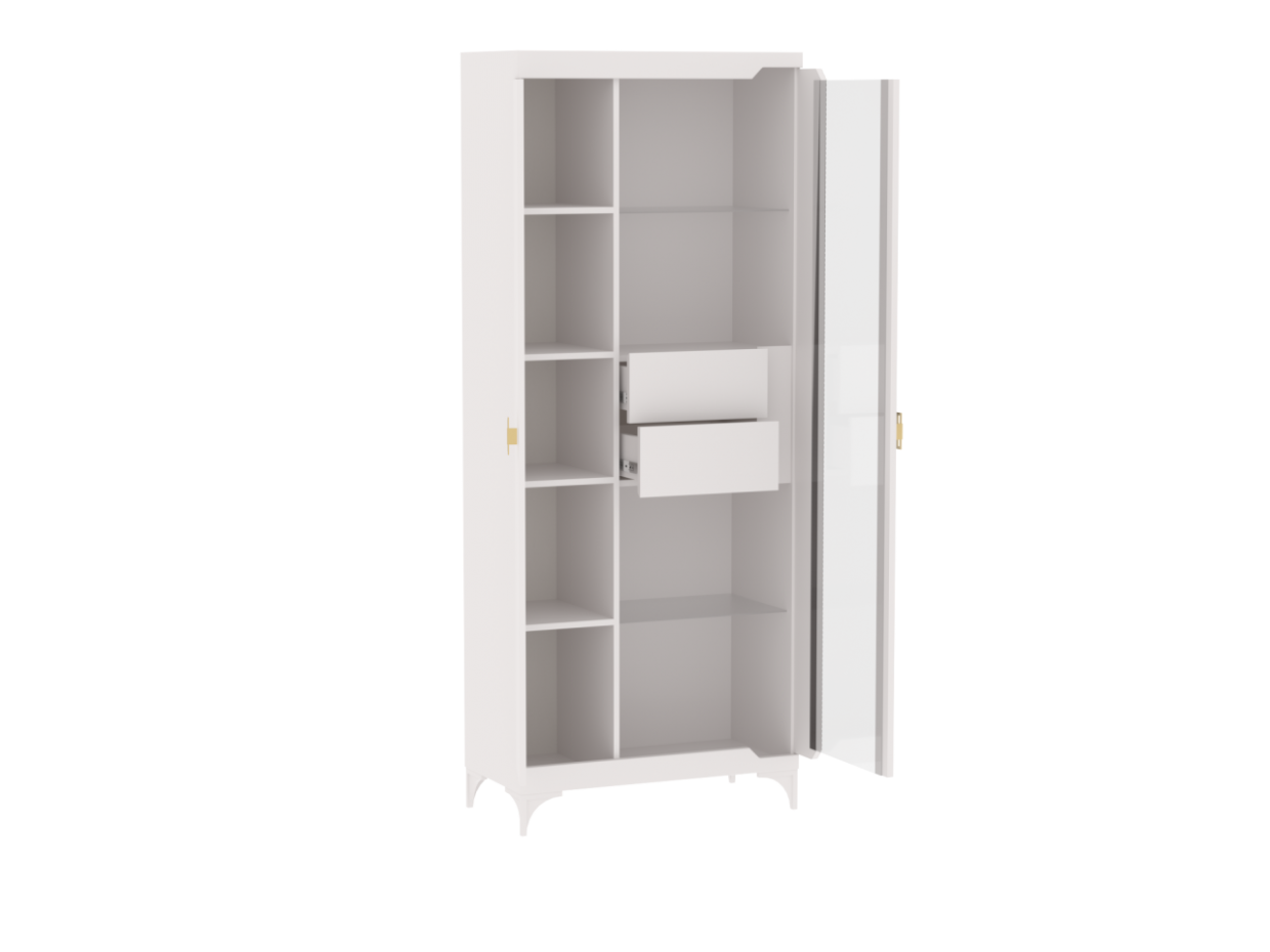 Пенал со стеклом широкий NEW Сиде Белый (СБК) в Нижнем Тагиле - nizhnij-tagil.mebel-e96.ru