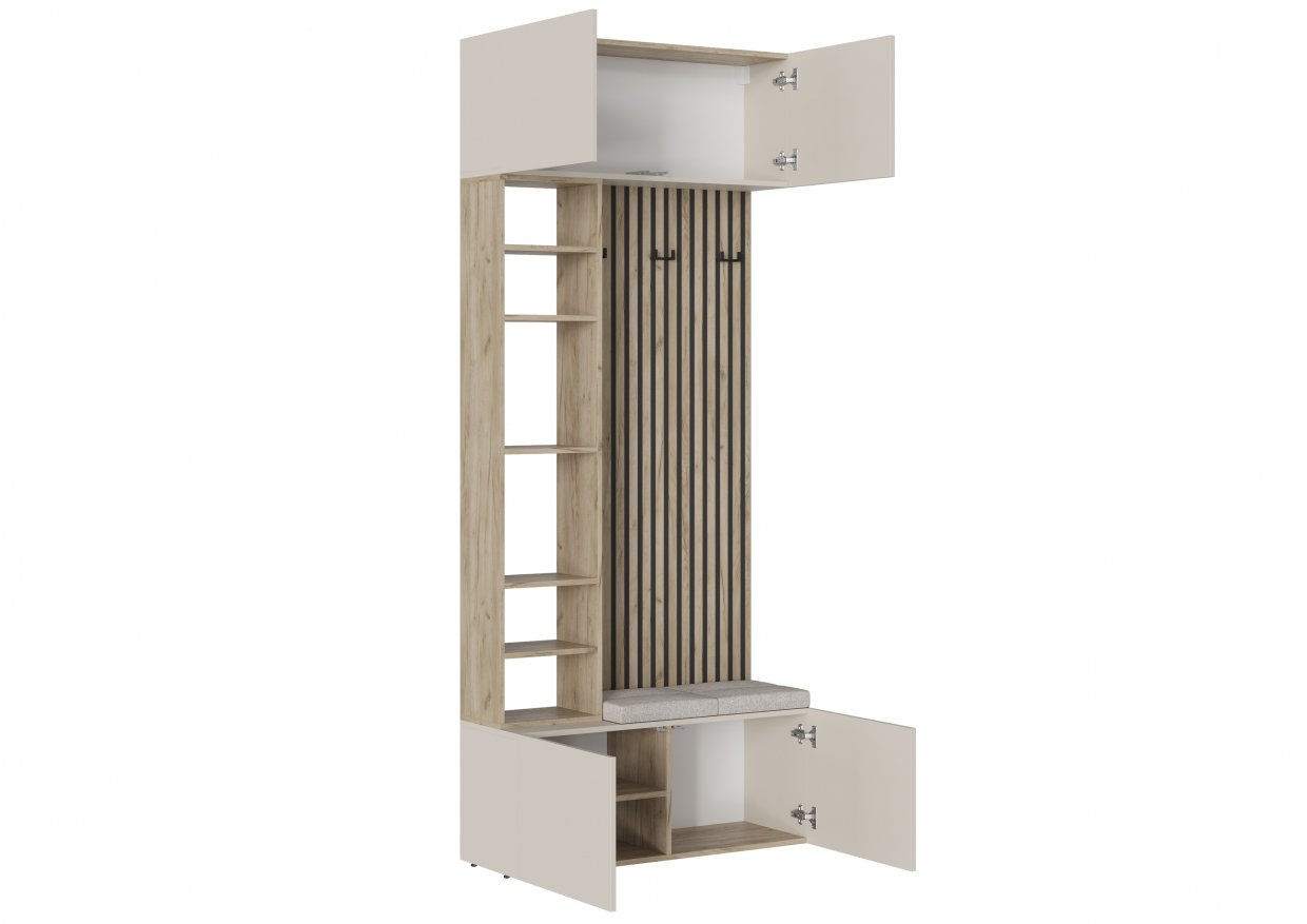 Модуль прихожей БОХО отлично подходит для одиночного размещения в небольшой прихожей или составит полноценную композицию с распашными или шкафами-купе БОХО.