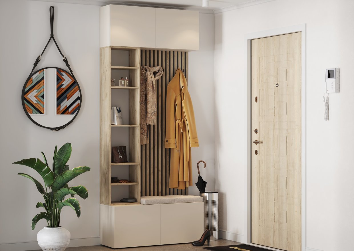 Навесная тумба — это удобное решение, которое предоставляет дополнительное пространство для хранения различных мелочей. Она отлично подходит для головных уборов и других мелких предметов.