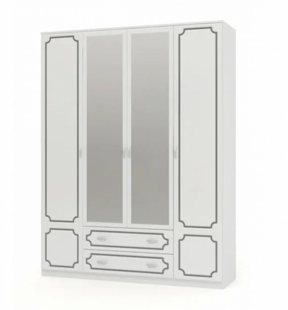 Шкаф 1600 мм ШР-4 с 2 зерк. ЛАК Белый жемчуг (БМ)